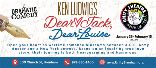 Unity Theatre presents Ken Ludwig’s Dear Jack, Dear Louise, a dramatic comedy playing on the Main Stage January 29 – February 15, 2026.